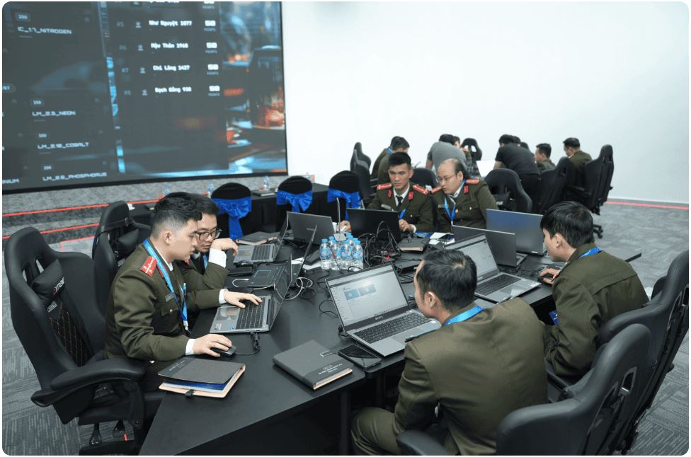 Tại đây, các cán bộ/ chiến sĩ được thực hành phòng thủ mạng, phát hiện - xử lý - ứng cứu kịp thời các sự cố tấn công mạng chuẩn theo chu trình.