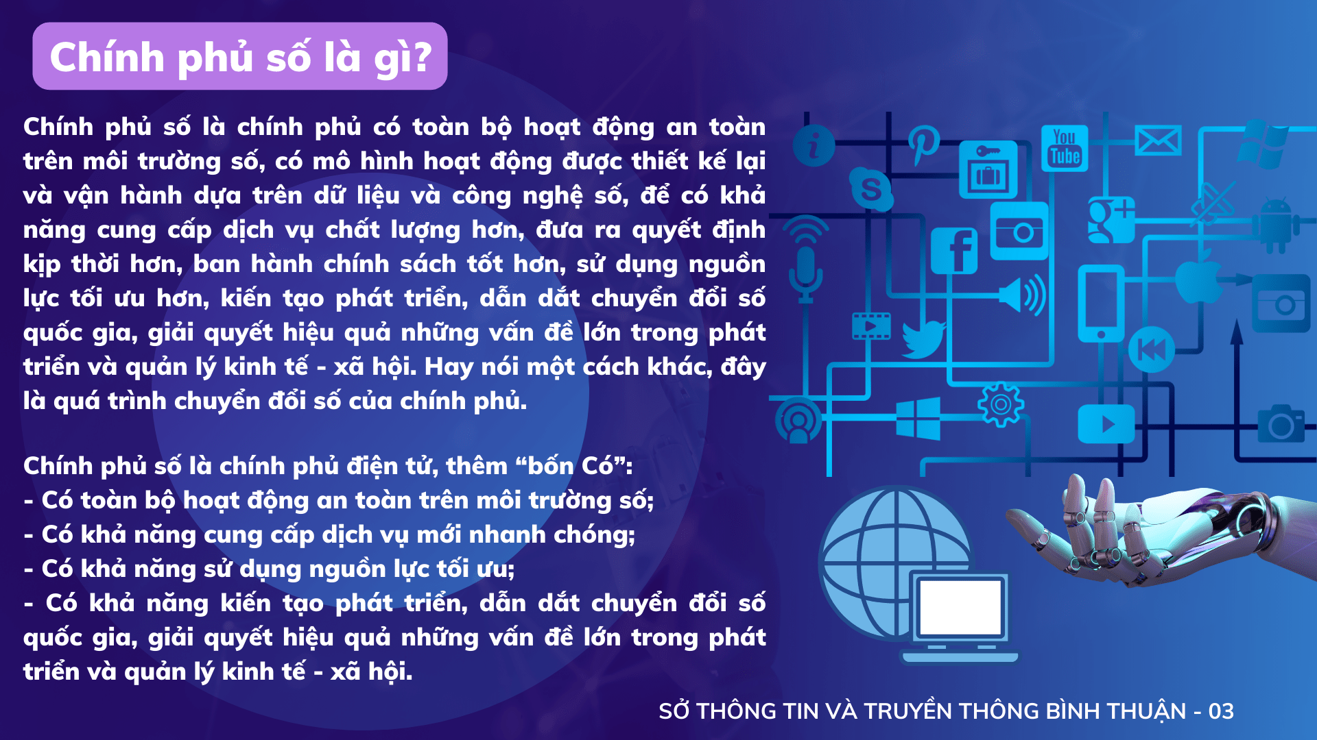 Chính phủ điện tử là chính phủ tin học hóa quy trình đã có, cung cấp trực tuyến các dịch vụ hành chính công đã có. Chính phủ số là chính phủ chuyển đổi số, đổi mới mô hình hoạt động, thay đổi quy trình làm việc, thay đổi cách thức cung cấp dịch vụ, nhanh chóng cung cấp dịch vụ công mới. Để hiểu rõ hơn về chính phủ điện tử và chính phủ số, mời bạn đọc cùng theo dõi nội dung dưới đây: