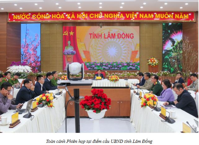 Tại điểm cầu UBND tỉnh Lâm Đồng, Phó Chủ tịch UBND tỉnh Đinh Văn Tuấn chủ trì Phiên họp. Tham dự có đại diện lãnh đạo các sở, ban, ngành.