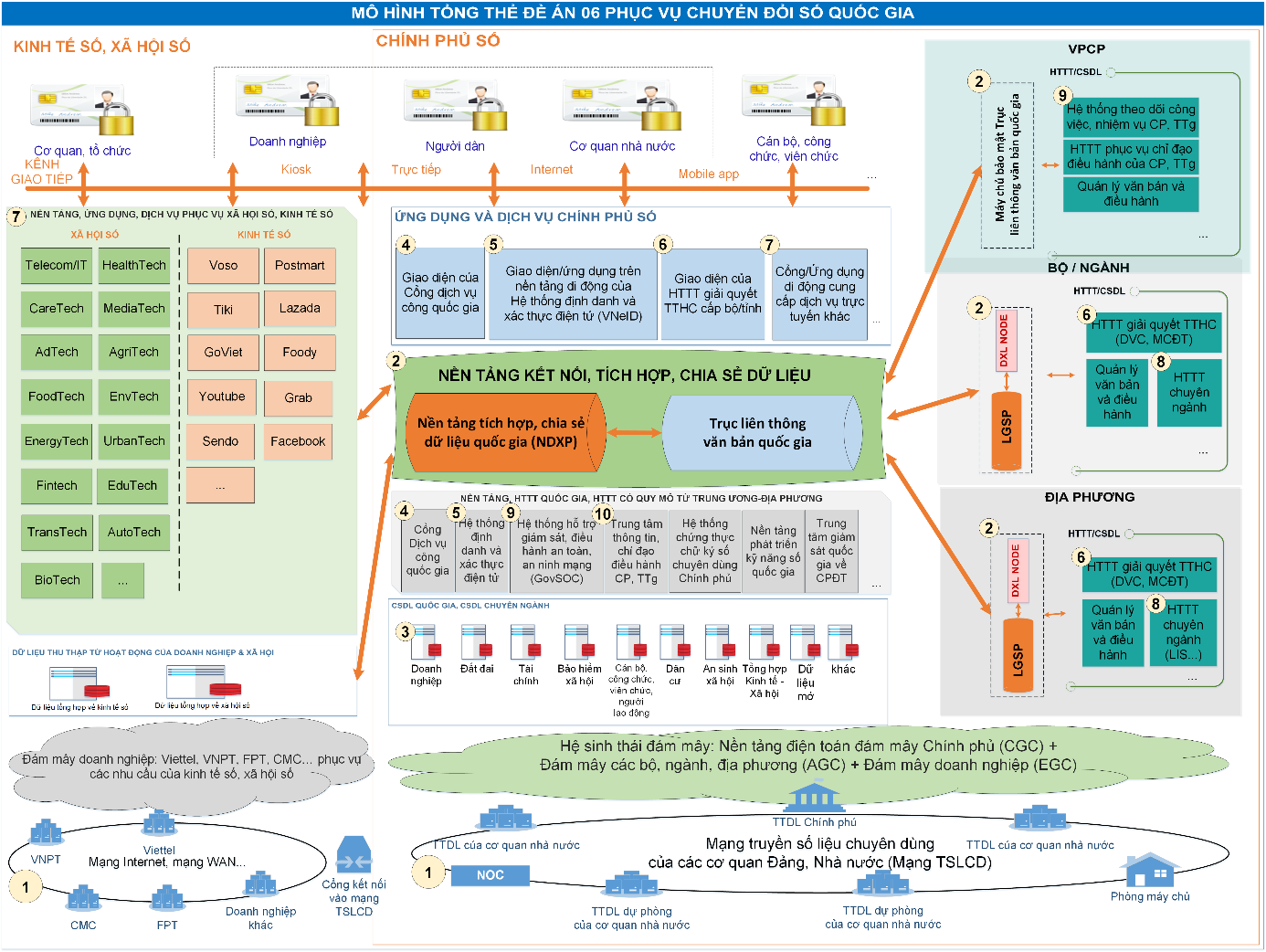 Ảnh: Mô hình tổng thể các thành phần công nghệ thông tin của Đề án 06 (Nguồn trích: theo Công văn số 1552/BTTTT-THH)